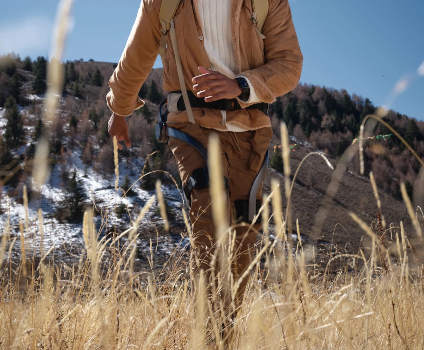 The Hypershell AeroFlex Softsuit, tailored for exoskeleton wear, combines highly supportive yet lightweight materials with a well-designed load distribution, ensuring